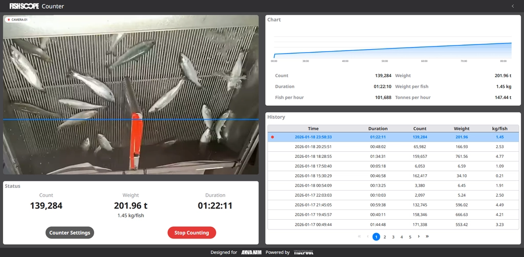 FISHSCOPE는 AI 컴퓨터비전 기술로 어류의 생장·행동을 정량화하여 양식 기업이 노동과 감에 의존했던 기존의 비효율적인 양식 방법을 개선하고 운영을 효율화 및 규모화하는 것을 돕습니다.